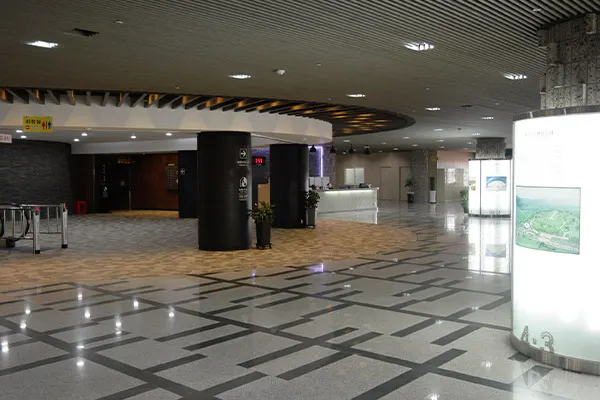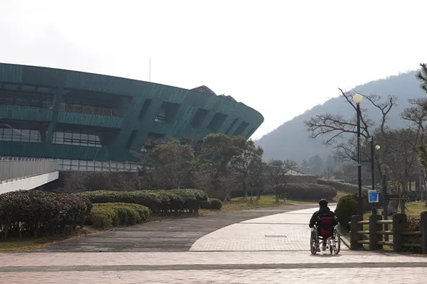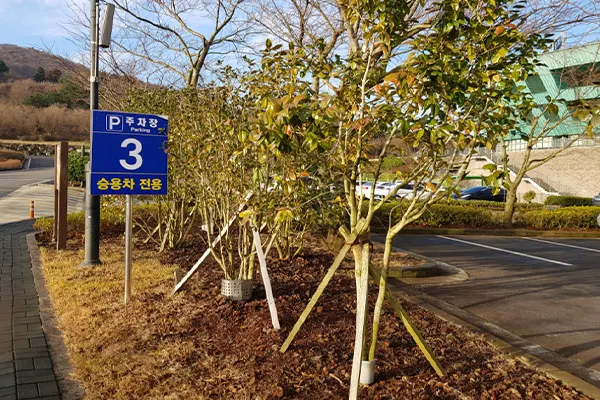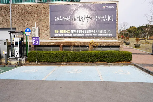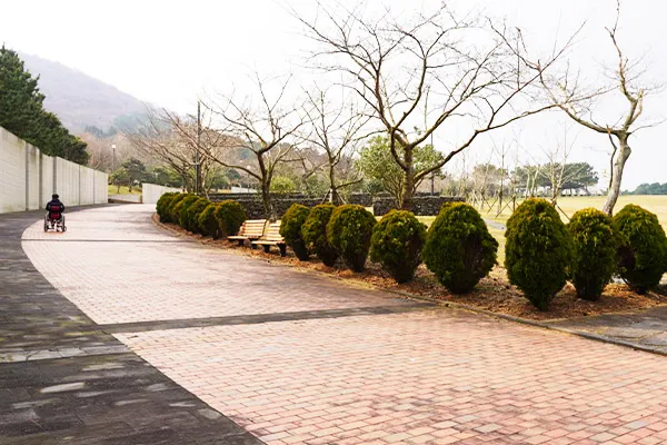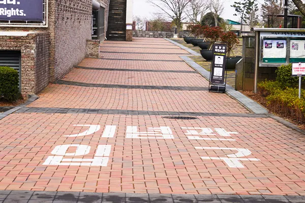 주출입구(접근로) : 주차장에서 보도블록 인도를 따라 이동하여 제주4.3평화기념관(전시실)방향 중간 배수로 주의