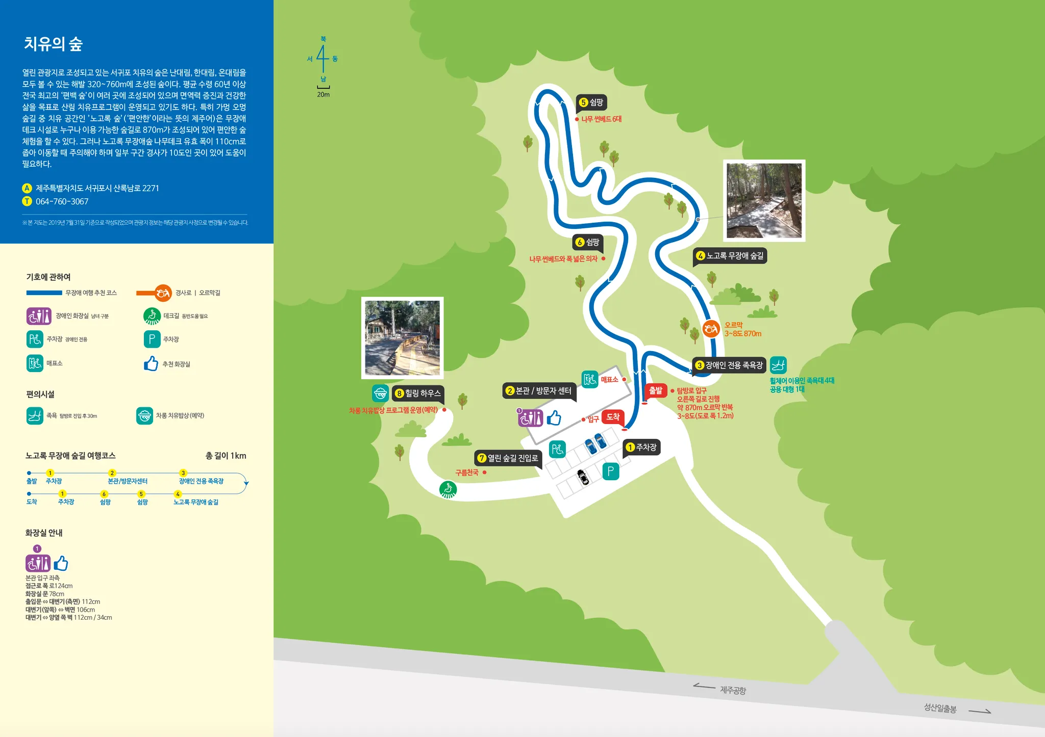 제주도 서귀포시에 위치한 국유림으로 한라산 중턱에 자리 잡고 있으며, 총 면적은 182.4ha이다. 숲에는 다양한 산림 생태계가 보존되어 있으며, 탐방객들은 숲길을 걸으며 자연을 만끽할 수 있습니다. 숲길 조성, 휴식 공간 마련, 체험 프로그램 개발 등을 통해 숲을 치유 공간으로 조성하였으며, 숲길은 총 12개 코스로 구성되어 있으며, 코스마다 거리와 난이도가 다른데 숲길을 따라 걸으면 편백나무, 삼나무, 참나무 등 다양한 나무를 볼 수 있으며, 계곡, 폭포, 습지 등 다양한 자연 경관을 감상할 수 있습니다. 숲길 탐방, 요가, 명상, 산림욕 등 다양한 프로그램을 통해 숲을 체험할 수 있으며, 숲 속에서 숙박할 수 있는 숲속 펜션과 차롱치유밥상도 운영하고 있습니다.