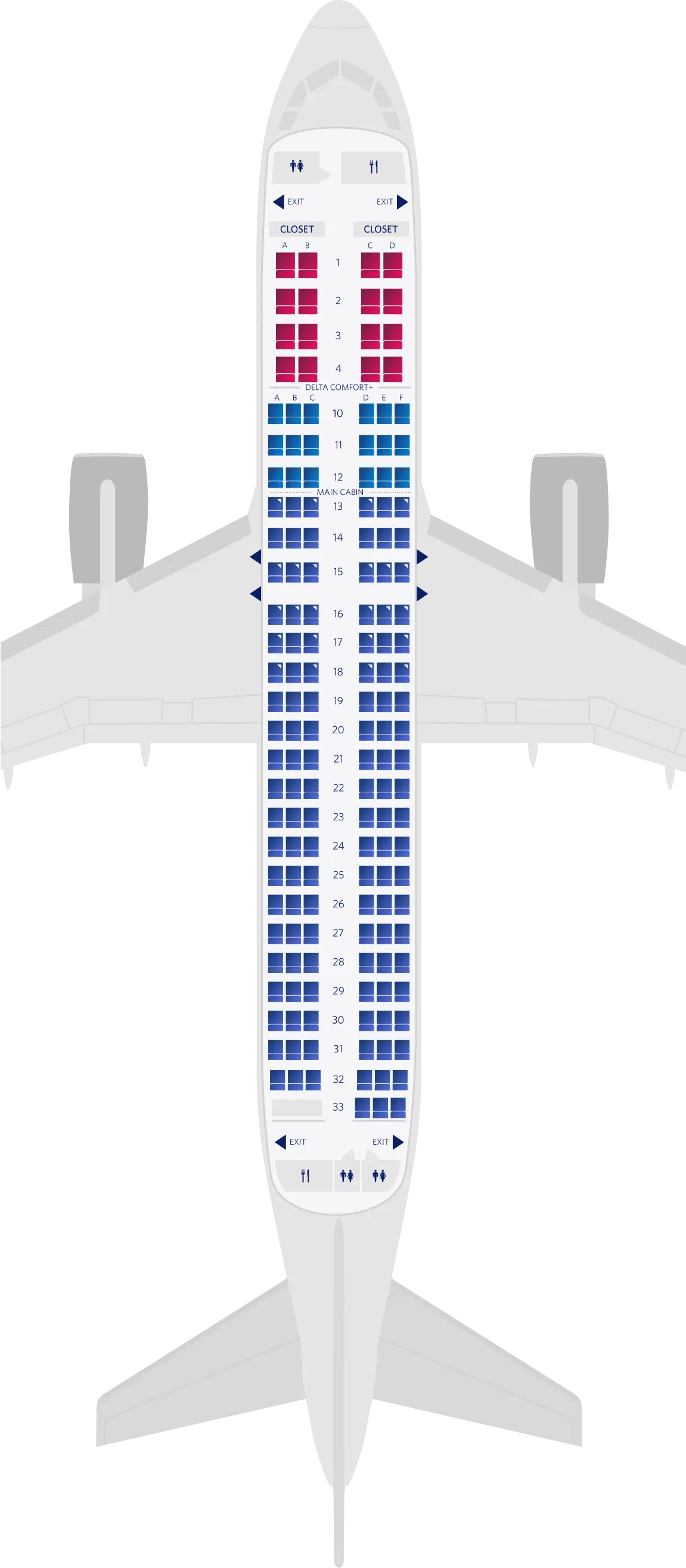 하단 표의 좌석명칭은 델타항공사의 좌석명칭을 참고용으로 사용한 것이며, 항공사 별로 좌석명칭은 다를 수 있습니다.