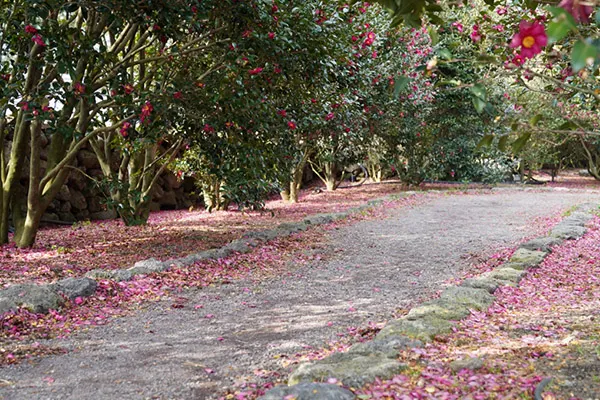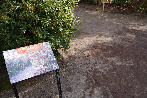 동백 온실/동백정원(계절 장소, 11월~1월) : 양 갈래 좌우로 정원과 온실이 있다. 온실은 평탄한 화산송이 길이고, 실외 정원은 작은 돌멩이들이 섞인 평탄한 노면이다.