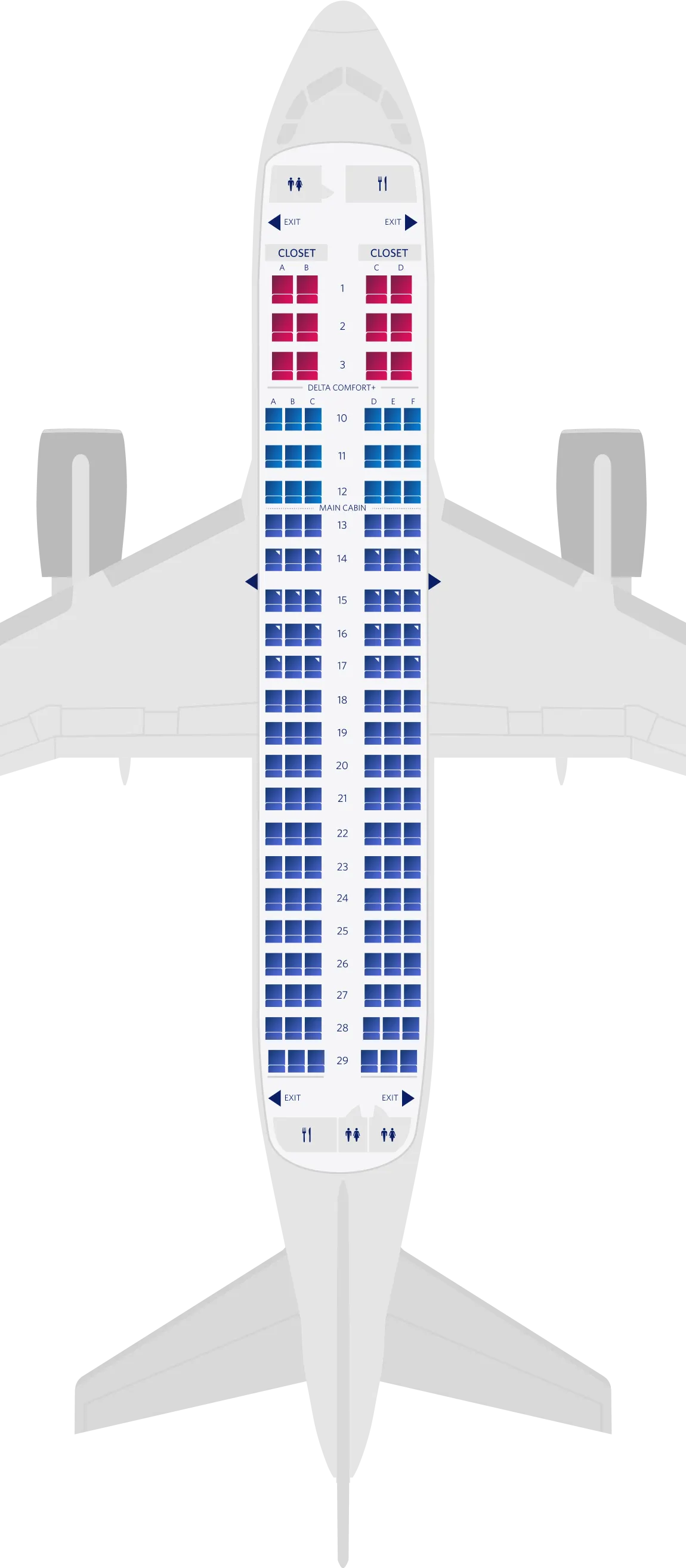 하단 표의 좌석명칭은 델타항공사의 좌석명칭을 참고용으로 사용한 것이며, 항공사 별로 좌석명칭은 다를 수 있습니다.