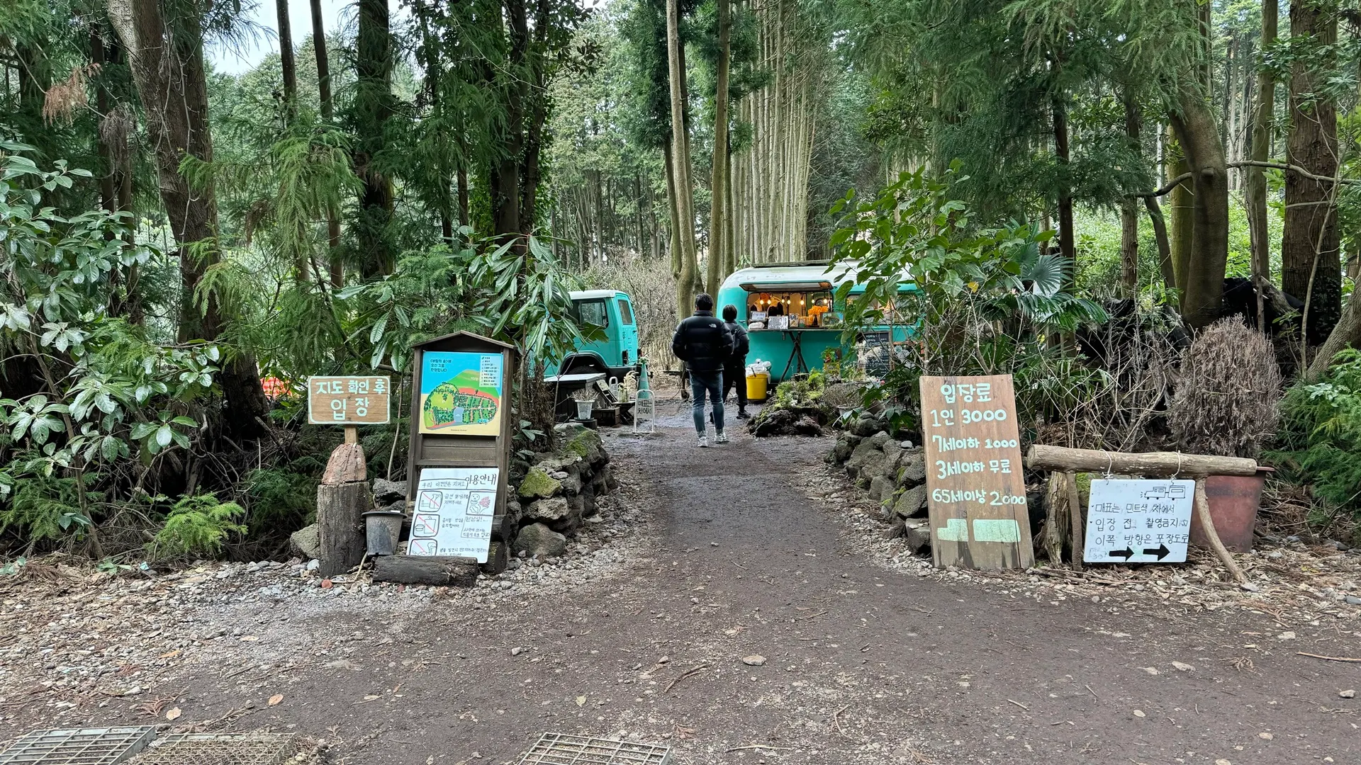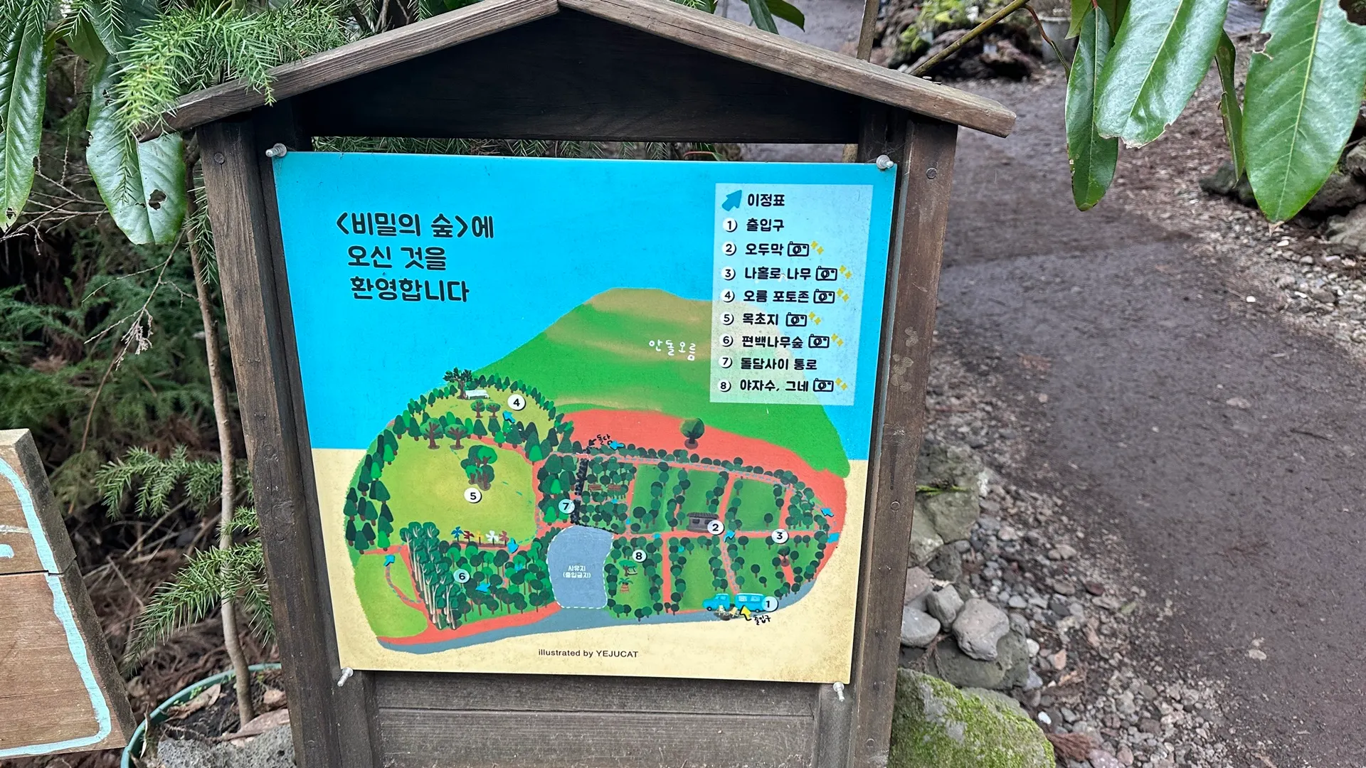 A : 제주도 구좌읍에 위치한 아름다운 숲입니다. 숲은 편백나무로 가득 차 있으며, 나뭇잎 사이로 스며드는 햇살이 아름다운 분위기를 자아냅니다.