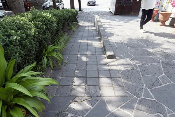 연못정원 : 입구 경사각도10도, 10m 내리막 경사