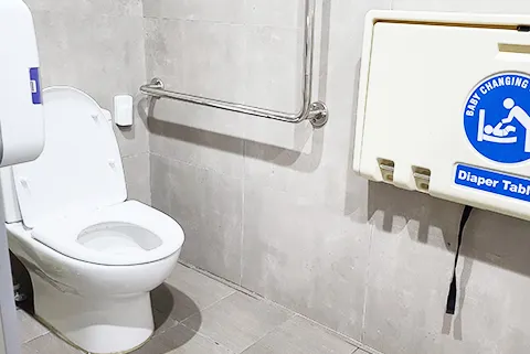 자동문/폭84cm/좌측길이30cm/정면길이150cm/우측길이40cm/안전손잡이, 세정장치,시각안내설비,기저귀교환대_있음