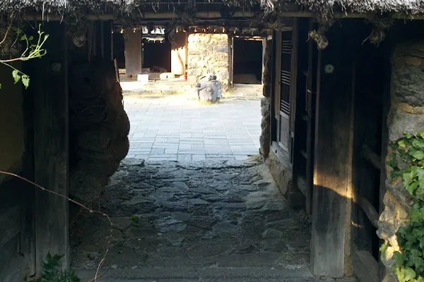 재암민속마을 입구 : 대문 입구 8cm 턱, 돌길