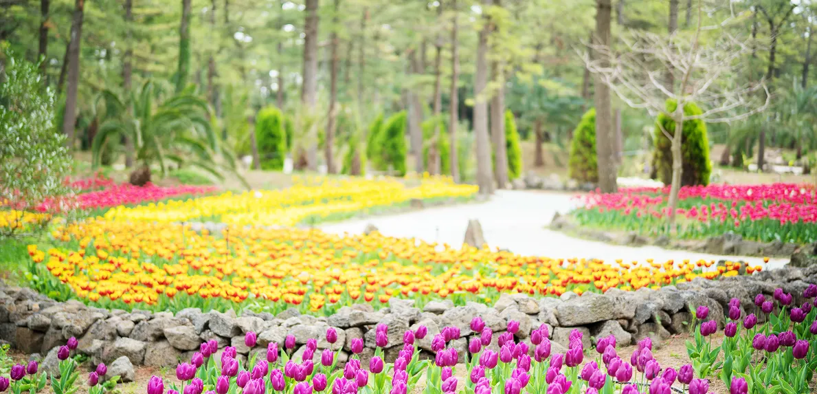 A : 4계절 다양하게 열리는 꽃 축제와 야자수길, 분재원, 민속마을, 동굴, 조류사파리, 연못정원, 수석전시관, 야외 산책 오솔길 등 9가지 테마등을 즐길 수 있습니다.