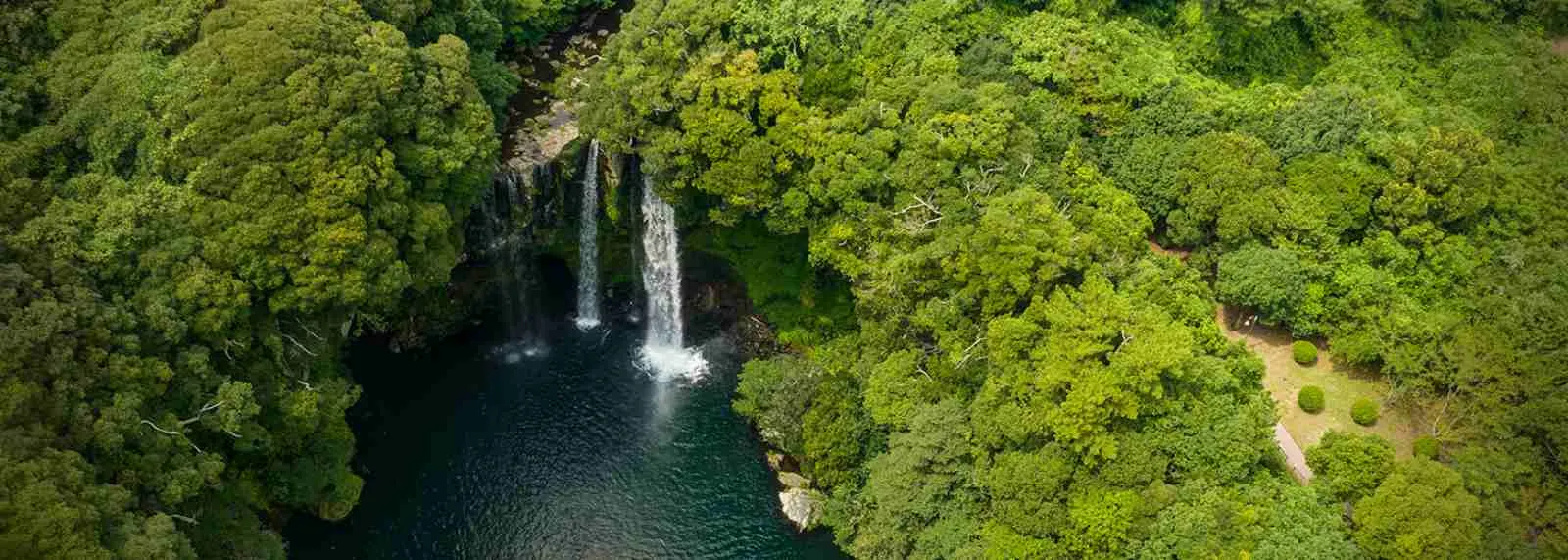 제주도 대표적인 관광 명소로 4계절 내내 아름다운 폭포 모습을 볼 수 있는 곳