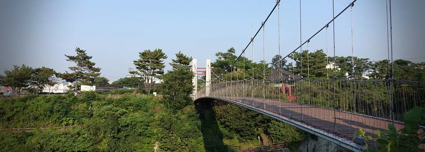 나무로 연결된 출렁다리와 현수교 형태의 다리 (길이 42m, 너비 2.2m)