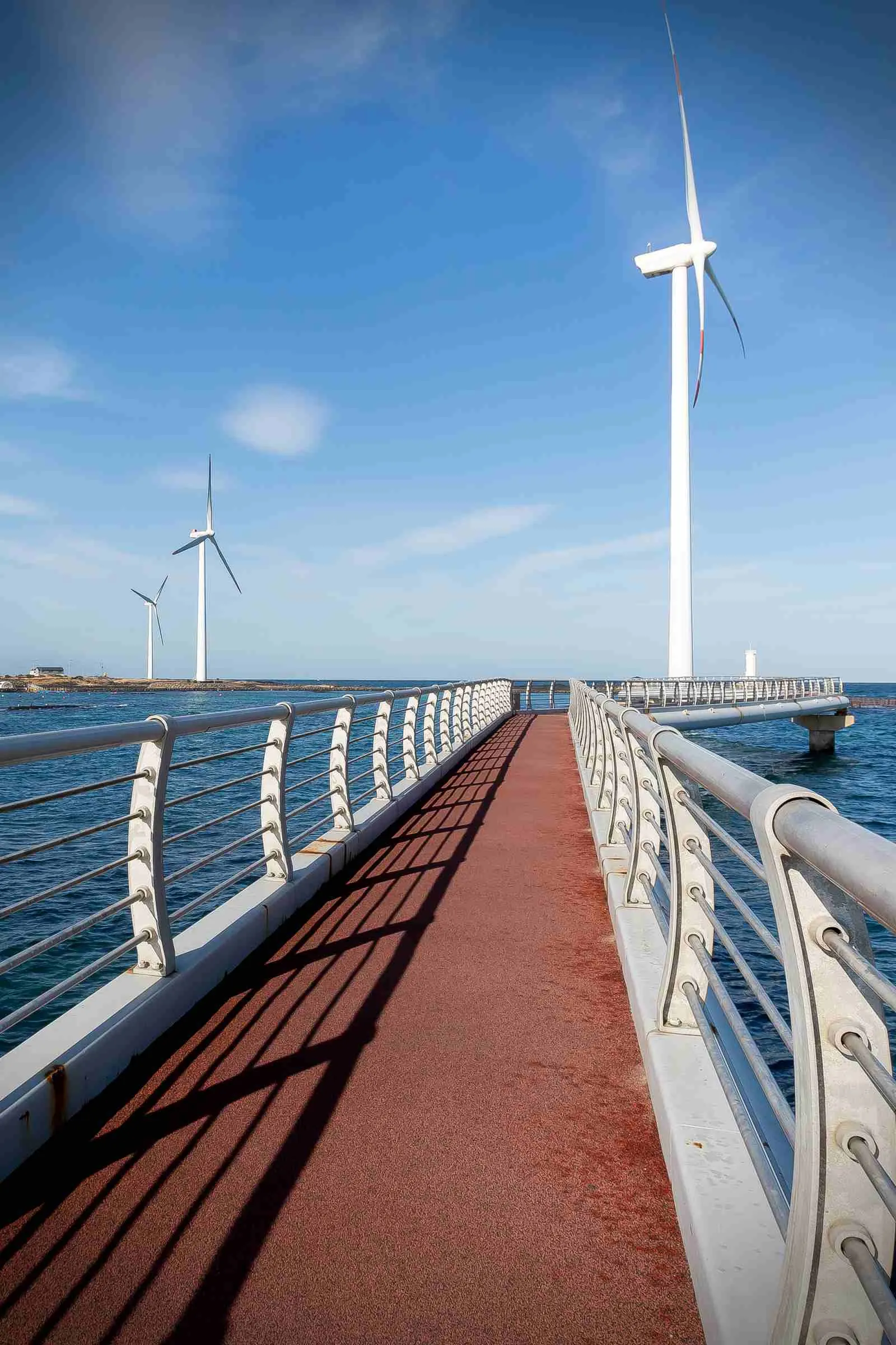 제주에서 드라이브 코스로는 단연 손꼽히는 숨은 명소이자, 일몰 도로로 해상풍력단지가 조성된 도로이다. 줄지어 서 있는 해상 풍차가 매우 인상적입니다. 싱계물공원 주차장에서 제주 환상자전거도로를 따라 서쪽으로 해안 산책길이 시작된다. 바다와 풍차가 어우러져 한 폭의 그림 같은 풍경과 푸른 바다와 원담이 더해져 자연의 아름다움을 만끽할 수 있는 곳입니다.