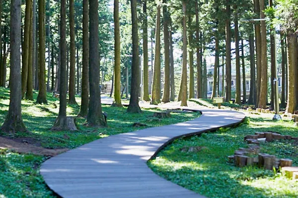 A : 울창한 삼나무숲과 다양한 산책로를 갖춘, 힐링과 산림욕을 즐기기에 좋은 곳입니다.