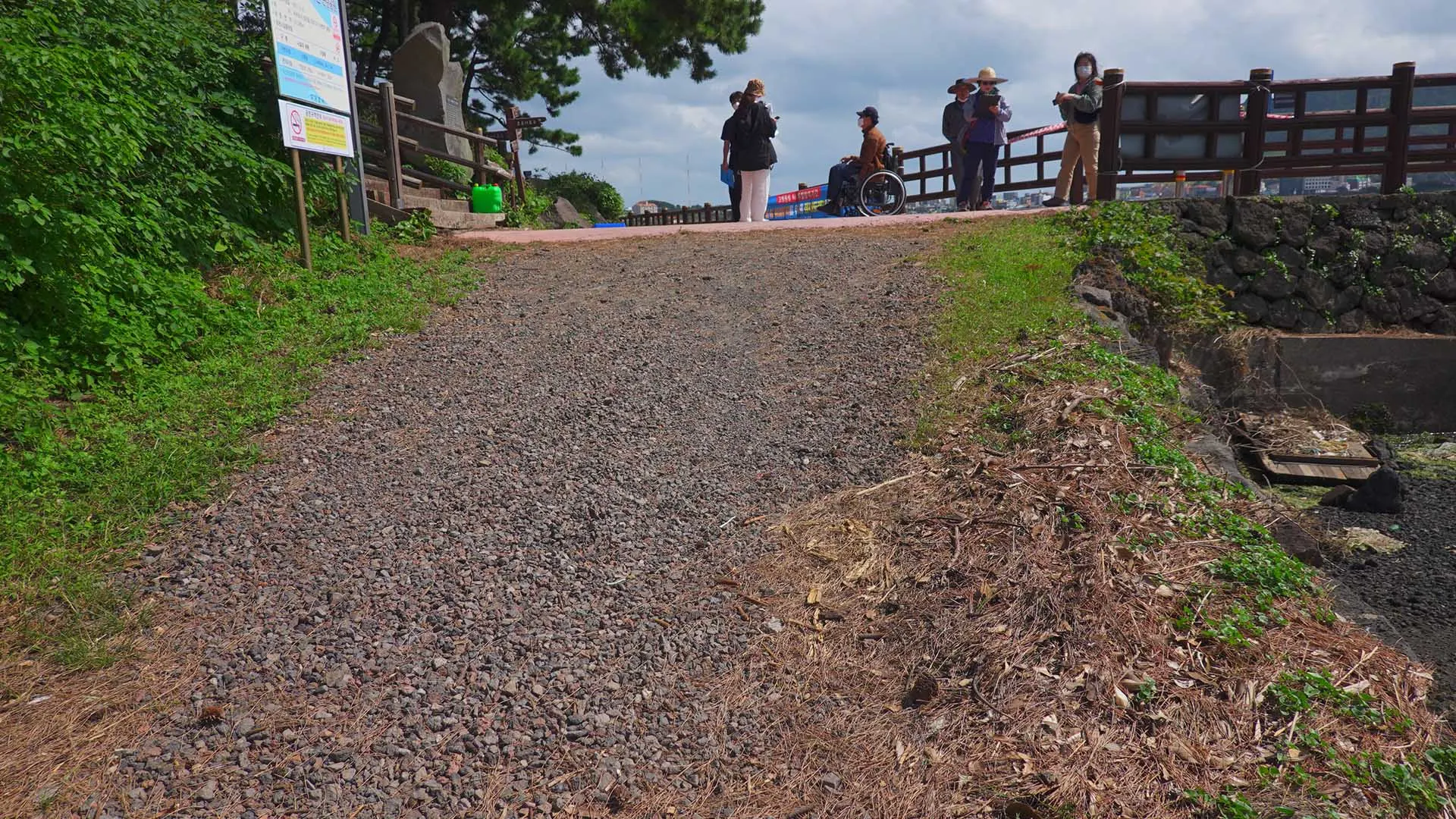 주출입구(접근로) : 오조리 사무소 주차장에서 나와 오조리 80번길 방면으로 가야한다. (좌회전)이 후 계속 직진을 해야 하며, 쉼터까지 (120여m) 차량 통행이 많으므로 주의