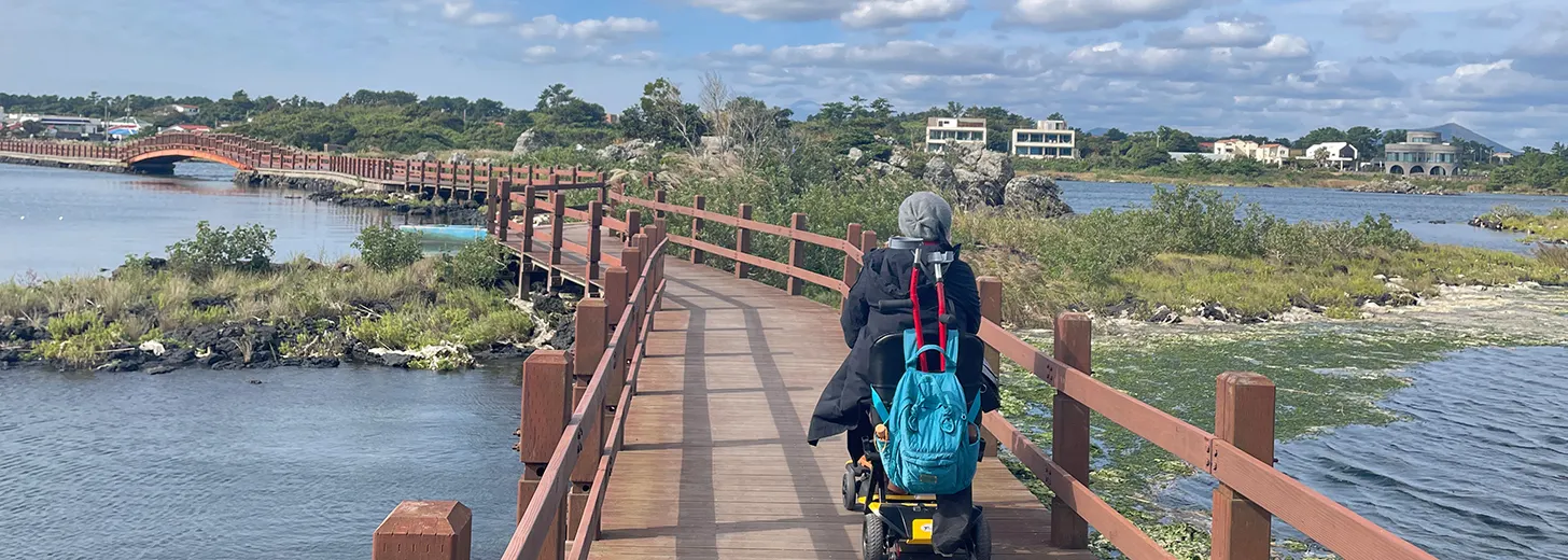 아름다운 자연 경관과 한적한 분위기를 만끽하며 달리는 휠체어 라이딩