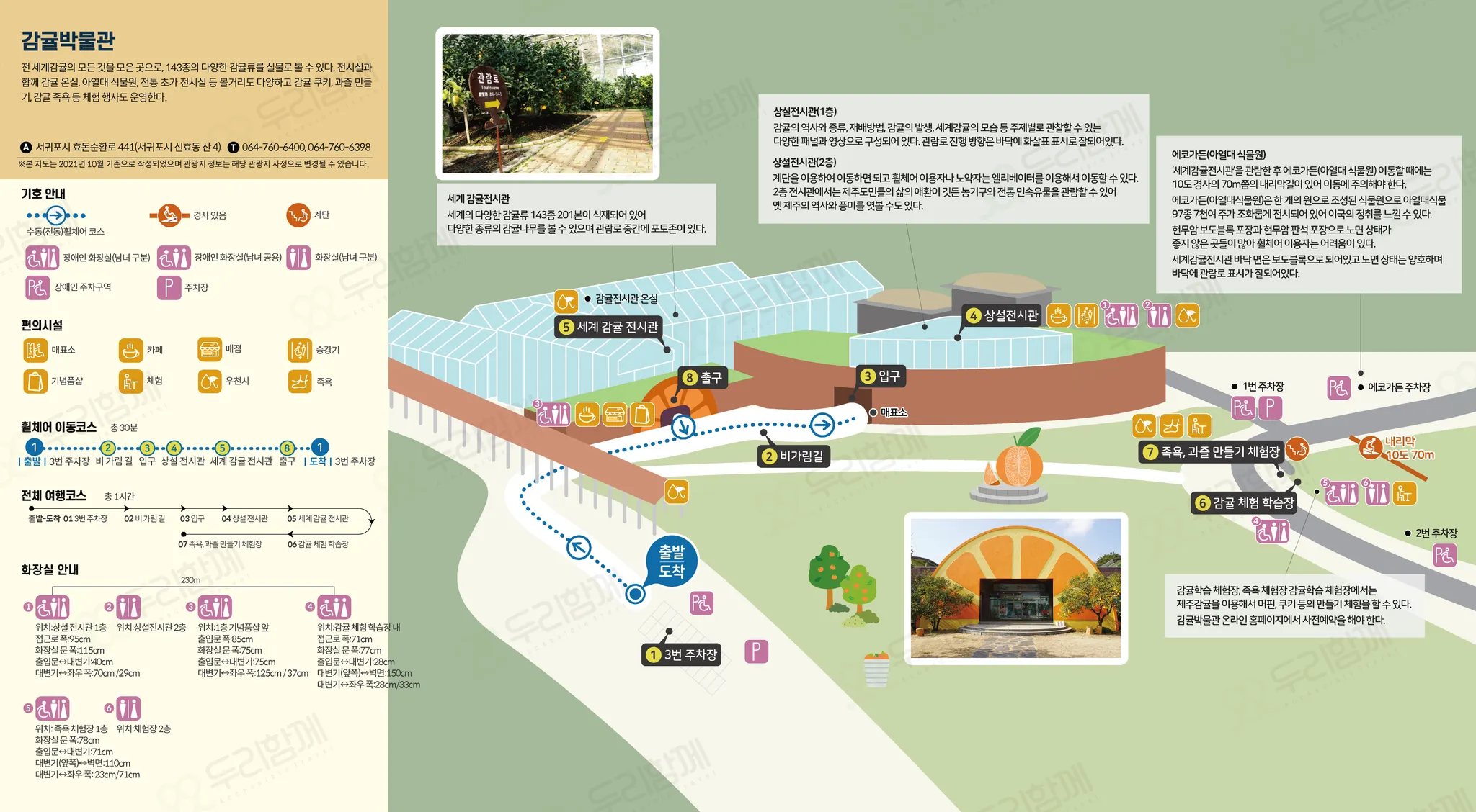 감귤박물관 3번 주차장 → 비가림길 → 입구 → 상설 전시관 → 세계 감귤 전시관 → 출구 → 3번 주차장