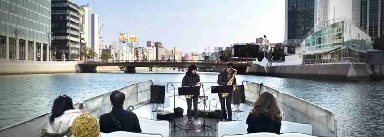 활기찬 후쿠오카의 거리를 물 위에서 즐질 수 있는 코스입니다. 큐슈 제일의 번화가 나카스 강변에 늘어선 포장마차, 관광 명소로 인기인 운하도시 하카타를 지나는 유람선입니다.