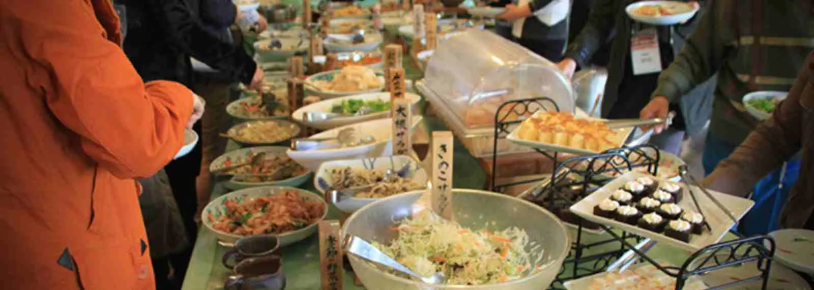 약 3000명의 현지 생산자가 등록하는 직판장 「농산물 바자르관」을 메인으로 상시 약 70~80종의 요리를 뷔페 형식으로 맛볼 수 있는 레스토랑, 갓 구운 빵이 즐비한 베이커리 등이 산재한 「고노하나가르텐오야마본점」. 오리지널 가공품도 풍부하고 오야마쵸의 특산품인 매실을 사용한 잼과 시럽은 리피터가 많은 인기 상품입니다. 마을 주민들이 직접 생산, 요리하는 유기농 뷔페입니다.
